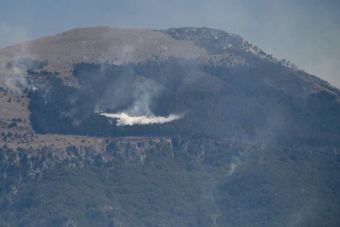 Brucia ancora il monte Giano, nel comune reatino di Antrodoco, e ciò che rimane della pineta che, fino a qualche giorno fa, disegnava la gigantesca scritta ‘Dux’.