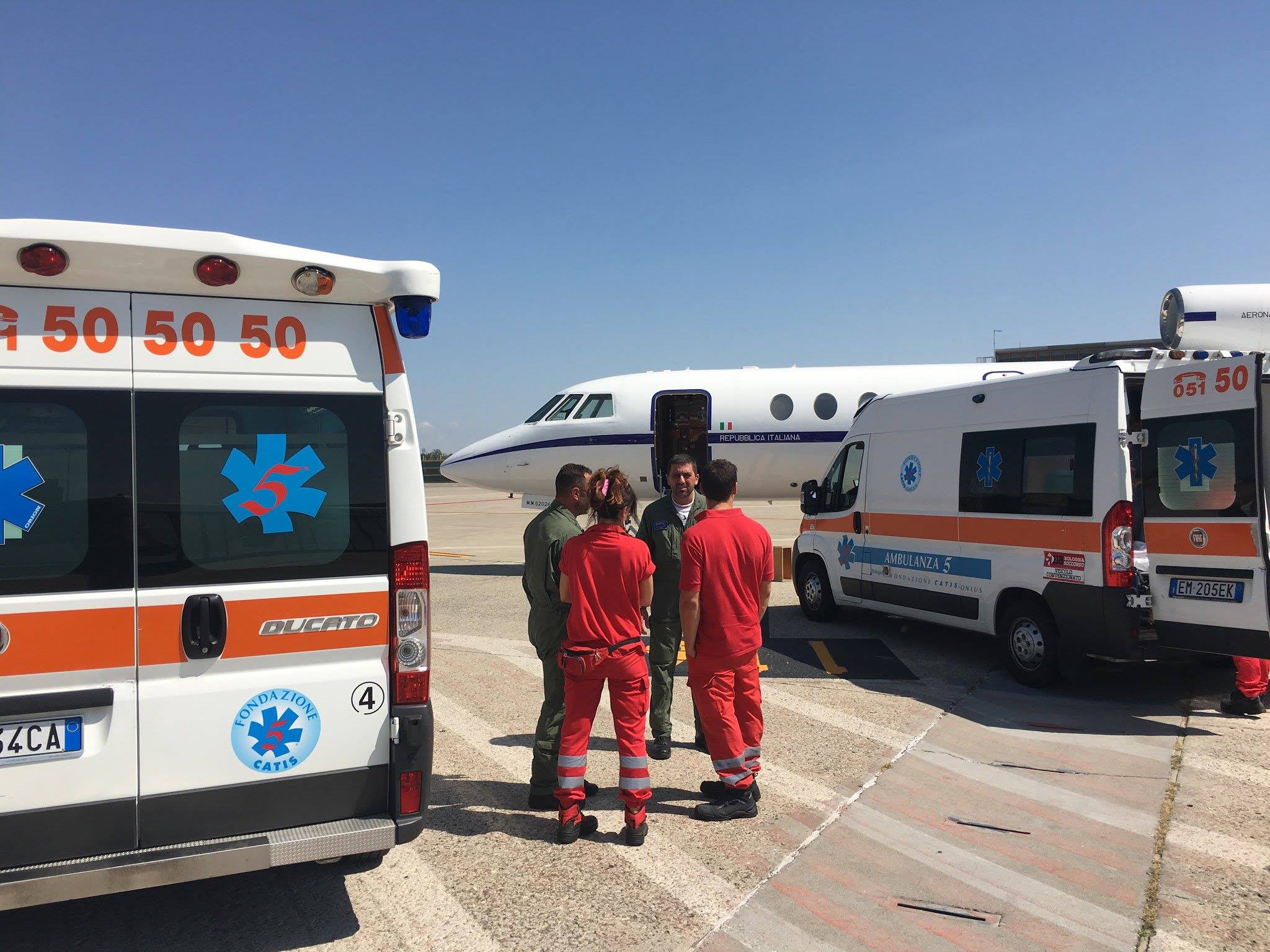 Il primo trasporto era stato già pianificato per una donna di 20 anni che doveva essere trasportata all’Ospedale di Imola, quando, poco prima del decollo dall’Aeroporto di Ciampino, è arrivata anche la richiesta della Prefettura di Sassari per un trasporto IPV (Imminente Pericolo di Vita) sempre per una donna di 41 anni che doveva essere velocemente trasportata presso l’Ospedale Bellaria di Bologna. E’ stata, quindi, gestita la missione aerea dalla Sala Situazioni di Vertice del Comando della Squadra Aerea, la sala operativa dell’Aeronautica Militare da dove vengono coordinati anche questo tipo di interventi, che ha dovuto prevedere a bordo del velivolo la presenza di due distinte equipe mediche che hanno assistito le due pazienti durante tutte le fasi del volo.