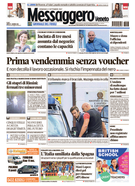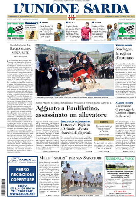 Uncategorized Rassegna stampa 03.09.2017 Rassegna stampa 03.09.2017 Da Ansa News - 3 Settembre 2017 ARTICOLI CORRELATIALTRI ARTICOLI DA QUESTO AUTORE Uncategorized “Passerella rovina dune a La Caletta”, esposto cittadini Uncategorized Sardegna: da oggi sei Province e due Città metropolitane Uncategorized Comunali: slittano in autunno anche in Sardegna Uncategorized Muravera, nasce in villaggio turistico area dedicata a ospiti con disabilità Uncategorized Laconi: litigio tra automobilisti, un denunciato per danneggiamento e minacce Uncategorized Cagliari, occhio alle multe: ecco gli autovelox del mese di aprile 2021 - Pubblicità - Ultime notizie Gimbe: “Sardegna agli ultimi posti in Italia per ciclo vaccinale completato” 31 Marzo 2021 Covid in Sardegna, Gimbe: “In una settimana casi in aumento del 56,8%” 31 Marzo 2021 Festino ‘clandestino’ a Cagliari: 12 sanzioni una denuncia 31 Marzo 2021