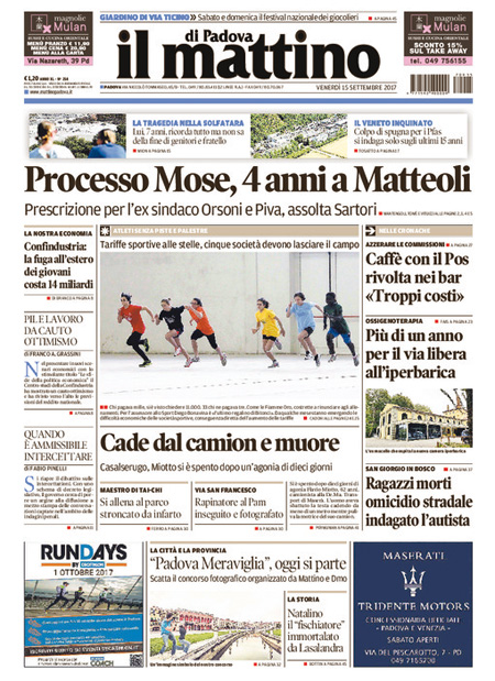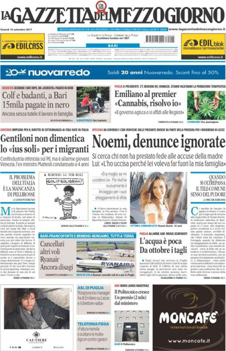 Uncategorized Rassegna stampa 15-09-2017 Rassegna stampa 15-09-2017 Da Redazione Cagliaripad (Archivio) - 15 Settembre 2017 ARTICOLI CORRELATIALTRI ARTICOLI DA QUESTO AUTORE Uncategorized “Passerella rovina dune a La Caletta”, esposto cittadini Uncategorized Sardegna: da oggi sei Province e due Città metropolitane Uncategorized Comunali: slittano in autunno anche in Sardegna Uncategorized Muravera, nasce in villaggio turistico area dedicata a ospiti con disabilità Uncategorized Laconi: litigio tra automobilisti, un denunciato per danneggiamento e minacce Uncategorized Cagliari, occhio alle multe: ecco gli autovelox del mese di aprile 2021 - Pubblicità - Ultime notizie Gimbe: “Sardegna agli ultimi posti in Italia per ciclo vaccinale completato” 31 Marzo 2021 Covid in Sardegna, Gimbe: “In una settimana casi in aumento del 56,8%” 31 Marzo 2021 Festino ‘clandestino’ a Cagliari: 12 sanzioni una denuncia 31 Marzo 2021