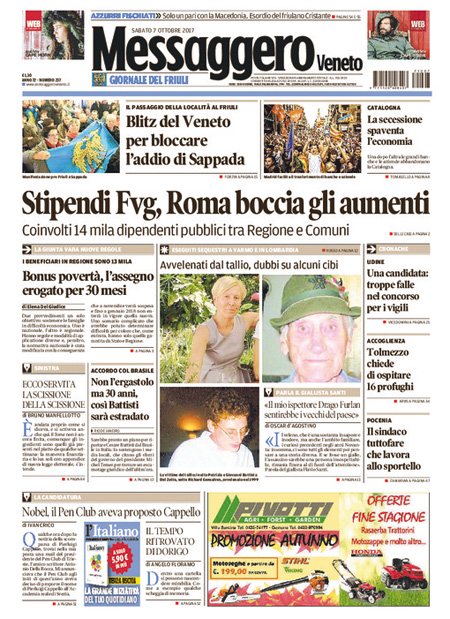 Uncategorized RASSEGNA STAMPA 07-10-2017 RASSEGNA STAMPA 07-10-2017 Da Redazione Cagliaripad - 7 Ottobre 2017 ARTICOLI CORRELATIALTRI ARTICOLI DA QUESTO AUTORE Uncategorized “Passerella rovina dune a La Caletta”, esposto cittadini Uncategorized Sardegna: da oggi sei Province e due Città metropolitane Uncategorized Comunali: slittano in autunno anche in Sardegna Uncategorized Muravera, nasce in villaggio turistico area dedicata a ospiti con disabilità Uncategorized Laconi: litigio tra automobilisti, un denunciato per danneggiamento e minacce Uncategorized Cagliari, occhio alle multe: ecco gli autovelox del mese di aprile 2021 - Pubblicità - Ultime notizie Gimbe: “Sardegna agli ultimi posti in Italia per ciclo vaccinale completato” 31 Marzo 2021 Covid in Sardegna, Gimbe: “In una settimana casi in aumento del 56,8%” 31 Marzo 2021 Festino ‘clandestino’ a Cagliari: 12 sanzioni una denuncia 31 Marzo 2021