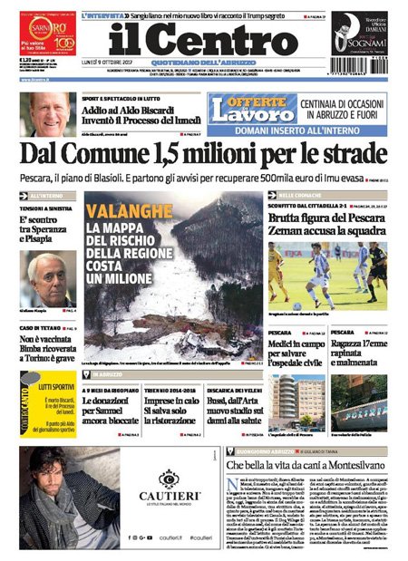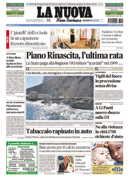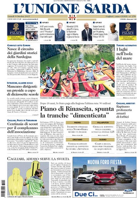 Uncategorized RASSEGNA STAMPA 09-10-2017 RASSEGNA STAMPA 09-10-2017 Da Redazione Cagliaripad - 9 Ottobre 2017 ARTICOLI CORRELATIALTRI ARTICOLI DA QUESTO AUTORE Uncategorized “Passerella rovina dune a La Caletta”, esposto cittadini Uncategorized Sardegna: da oggi sei Province e due Città metropolitane Uncategorized Comunali: slittano in autunno anche in Sardegna Uncategorized Muravera, nasce in villaggio turistico area dedicata a ospiti con disabilità Uncategorized Laconi: litigio tra automobilisti, un denunciato per danneggiamento e minacce Uncategorized Cagliari, occhio alle multe: ecco gli autovelox del mese di aprile 2021 - Pubblicità - Ultime notizie Gimbe: “Sardegna agli ultimi posti in Italia per ciclo vaccinale completato” 31 Marzo 2021 Covid in Sardegna, Gimbe: “In una settimana casi in aumento del 56,8%” 31 Marzo 2021 Festino ‘clandestino’ a Cagliari: 12 sanzioni una denuncia 31 Marzo 2021
