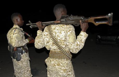 epa06083868 Somali soldiers stand guard at the scene of a car bomb explosion near Mogadishu, Somalia, 12 July 2017. Media outlets report that at least two people were killed when the car bomb went off at a checkpoint outside the Somali capital on 12 July 2017. Local media also report that the country's Islamist militant group al-Shabaab has claimed responsibility for the latest attack. EPA/SAID YUSUF WARSAME