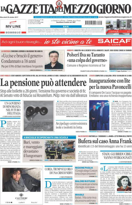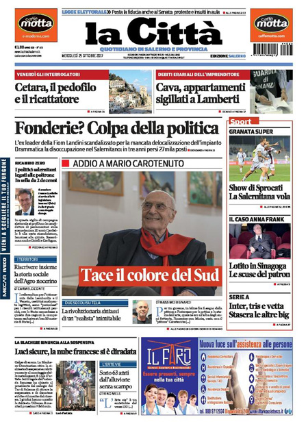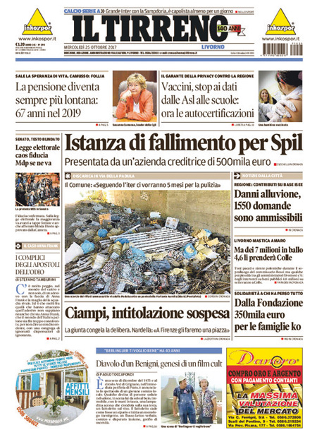Uncategorized Rassegna stampa – 25.10.2017 Rassegna stampa – 25.10.2017 Da Redazione Cagliaripad - 25 Ottobre 2017 ARTICOLI CORRELATIALTRI ARTICOLI DA QUESTO AUTORE Uncategorized “Passerella rovina dune a La Caletta”, esposto cittadini Uncategorized Sardegna: da oggi sei Province e due Città metropolitane Uncategorized Comunali: slittano in autunno anche in Sardegna Uncategorized Muravera, nasce in villaggio turistico area dedicata a ospiti con disabilità Uncategorized Laconi: litigio tra automobilisti, un denunciato per danneggiamento e minacce Uncategorized Cagliari, occhio alle multe: ecco gli autovelox del mese di aprile 2021 - Pubblicità - Ultime notizie Gimbe: “Sardegna agli ultimi posti in Italia per ciclo vaccinale completato” 31 Marzo 2021 Covid in Sardegna, Gimbe: “In una settimana casi in aumento del 56,8%” 31 Marzo 2021 Festino ‘clandestino’ a Cagliari: 12 sanzioni una denuncia 31 Marzo 2021