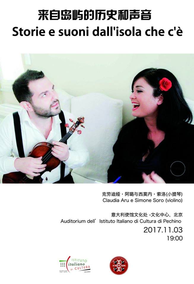 Dopo il viaggio in Giappone del novembre 2016 in cui Claudia Aru e Simone Soro hanno suonato per l’istituto italiano di Osaka, eccoli di nuovo in viaggio questa volta per l’istituto italiano di Pechino e per l’associazione dei sardi in Cina “Amistade”.