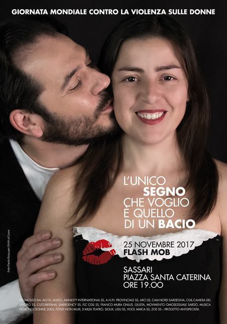 Come spiegano i promotori dell’iniziativa, “rivendichiamo serie politiche di contrasto della violenza di genere, mettendo l’accento sui percorsi di educazione all’affettività, al rispetto e alle differenze”. Secondo loro, “non può mancare il sostegno alle strutture di prima assistenza e di accoglienza delle vittime, che non devono avere paura di denunciare, ma per interrompere la spirale della violenza maschile sulle donne occorre una cultura differente”. Ecco perché ricorrere al messaggio d’amore per eccellenza, il bacio: “L’amore non c’entra col possesso, la prevaricazione, la violenza psicologica, fisica e sessuale. Vogliamo dirlo con un bacio, simbolo di affetto sincero, rispetto, condivisione, empatia”, è la spiegazione alle foto di Paola Rizzu per la grafica di Alberto Paba.