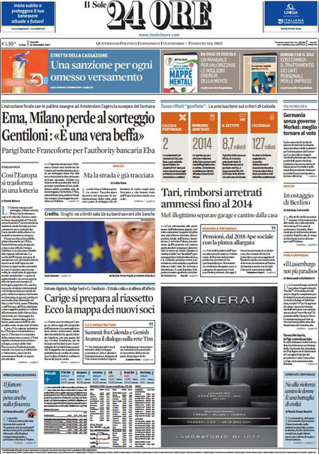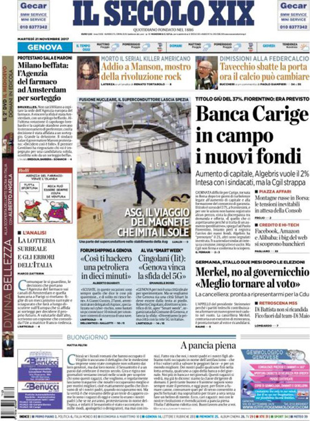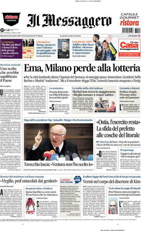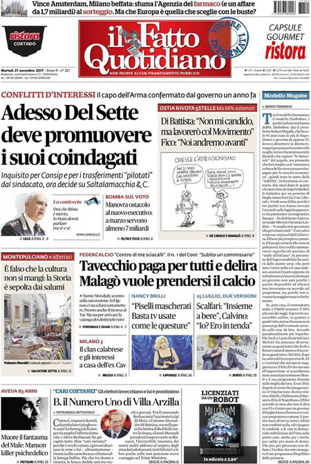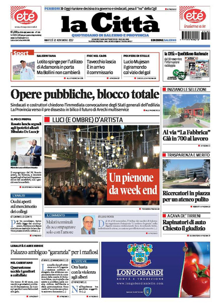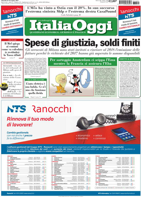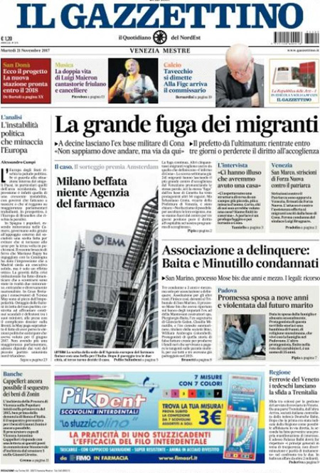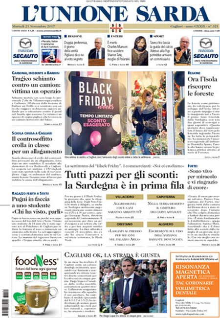 Uncategorized Rassegna stampa del 21-11-2017 Rassegna stampa del 21-11-2017 Da Redazione Cagliaripad - 21 Novembre 2017 ARTICOLI CORRELATIALTRI ARTICOLI DA QUESTO AUTORE Uncategorized “Passerella rovina dune a La Caletta”, esposto cittadini Uncategorized Sardegna: da oggi sei Province e due Città metropolitane Uncategorized Comunali: slittano in autunno anche in Sardegna Uncategorized Muravera, nasce in villaggio turistico area dedicata a ospiti con disabilità Uncategorized Laconi: litigio tra automobilisti, un denunciato per danneggiamento e minacce Uncategorized Cagliari, occhio alle multe: ecco gli autovelox del mese di aprile 2021 - Pubblicità - Ultime notizie Gimbe: “Sardegna agli ultimi posti in Italia per ciclo vaccinale completato” 31 Marzo 2021 Covid in Sardegna, Gimbe: “In una settimana casi in aumento del 56,8%” 31 Marzo 2021 Festino ‘clandestino’ a Cagliari: 12 sanzioni una denuncia 31 Marzo 2021