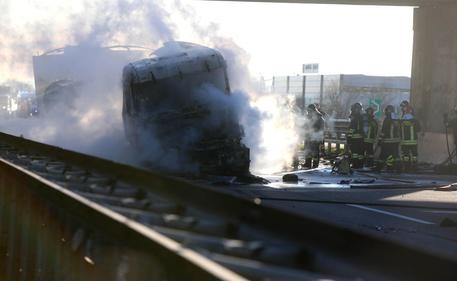 “Tutti i veicoli erano in fase di rallentamento anche perché le cose erano segnalate. Purtroppo il mezzo pesante – ha aggiunto Barra – non è riuscito a interrompere la propria corsa”. Intanto è stato identificato il proprietario dell’auto con targa francese sulla quale ieri sono morte cinque persone. Si tratta di un uomo di nazionalità francese e le autorità stanno cercando di stabilire se era alla guida, o comunque a bordo, del veicolo che ha preso fuoco dopo essere stato agganciato e trascinato da un camion contro un’autocisterna carica di benzina che è esplosa. “Credo – ha aggiunto Barra – che a breve riusciremo a identificare le cinque vittime”.