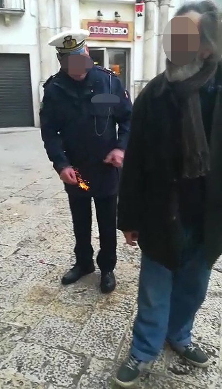 Il video che ritrae un vigile urbano che, in divisa, per strada, lancia un piccolo petardo tra i piedi di un disabile ultrasessantenne molto conosciuto in città è diventato virale su Whatsapp e ha scatenato l’indignazione di molti cittadini sui social. Il sindaco di Acquaviva delle Fonti, Davide Carlucci, ha ordinato l’avvio di un procedimento disciplinare nei confronti del vigile urbano, di 45 anni, ascoltato dal suo comandante e messo ora in ferie.
