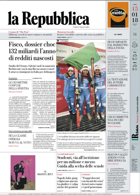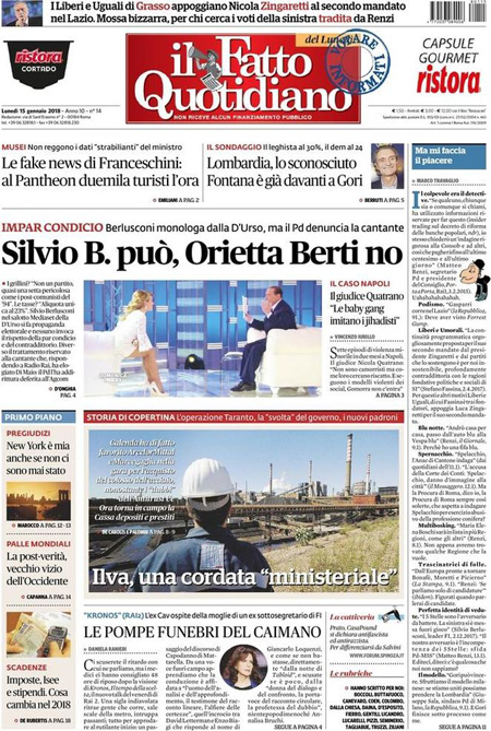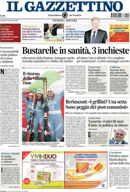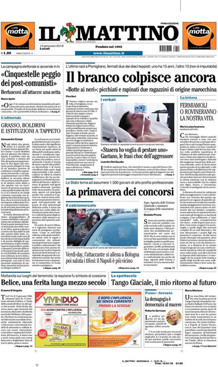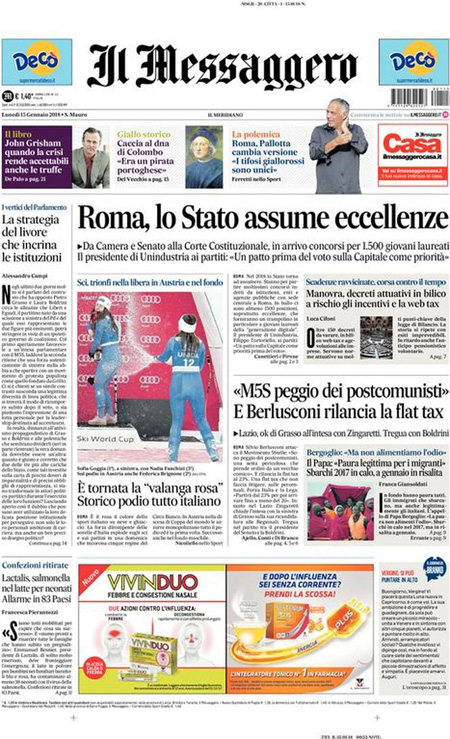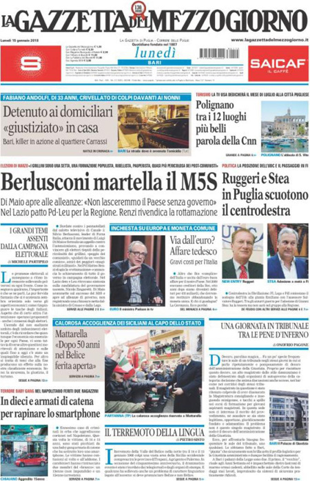 Notizie Flash news Rassegna stampa del 15-01-2018 Rassegna stampa del 15-01-2018 Da Redazione Cagliaripad - 15 Gennaio 2018 ARTICOLI CORRELATIALTRI ARTICOLI DA QUESTO AUTORE Flash news Caso camici: Fontana indagato anche per autoriciclaggio Flash news Scoperta nuova variante in Brasile Flash news Macron, tutta la Francia in zona rossa Flash news Covid, ok Cdm al nuovo decreto. Niente zone gialle in aprile, possibili deroghe in base a contagi e vaccini Flash news Covid: 23.904 positivi, 467 vittime. Il tasso di positività è del 6,8%, in aumento Flash news Documenti a ufficiale russo, Di Maio: “Espulsi due funzionari” - Pubblicità - Ultime notizie Gimbe: “Sardegna agli ultimi posti in Italia per ciclo vaccinale completato” 31 Marzo 2021 Covid in Sardegna, Gimbe: “In una settimana casi in aumento del 56,8%” 31 Marzo 2021 Festino ‘clandestino’ a Cagliari: 12 sanzioni una denuncia 31 Marzo 2021