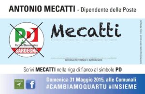 Mecatti Antonio, candidato consigliere comunale lista Pd alle comunali di Quartu, 2015 (concorrente a lista certificata M5S)