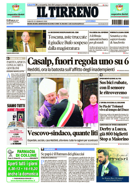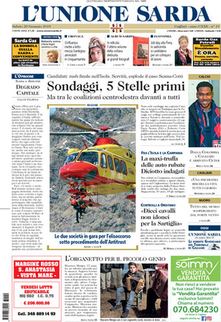 Uncategorized RASSEGNA STAMPA 20-01-2018 RASSEGNA STAMPA 20-01-2018 Da Redazione Cagliaripad - 20 Gennaio 2018 ARTICOLI CORRELATIALTRI ARTICOLI DA QUESTO AUTORE Uncategorized “Passerella rovina dune a La Caletta”, esposto cittadini Uncategorized Sardegna: da oggi sei Province e due Città metropolitane Uncategorized Comunali: slittano in autunno anche in Sardegna Uncategorized Muravera, nasce in villaggio turistico area dedicata a ospiti con disabilità Uncategorized Laconi: litigio tra automobilisti, un denunciato per danneggiamento e minacce Uncategorized Cagliari, occhio alle multe: ecco gli autovelox del mese di aprile 2021 - Pubblicità - Ultime notizie Gimbe: “Sardegna agli ultimi posti in Italia per ciclo vaccinale completato” 31 Marzo 2021 Covid in Sardegna, Gimbe: “In una settimana casi in aumento del 56,8%” 31 Marzo 2021 Festino ‘clandestino’ a Cagliari: 12 sanzioni una denuncia 31 Marzo 2021