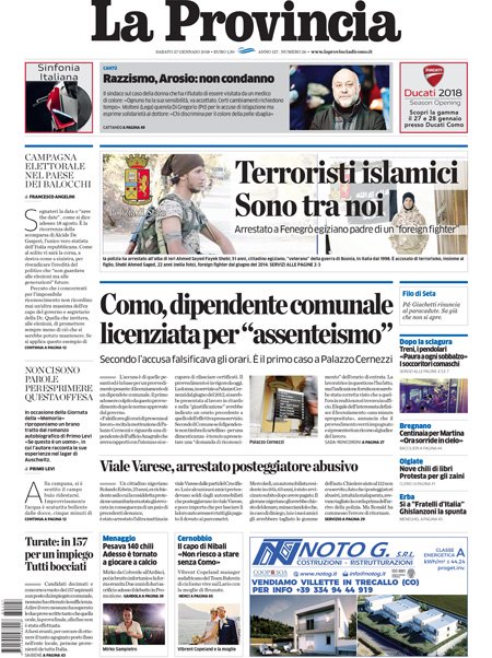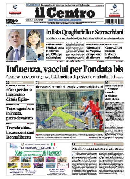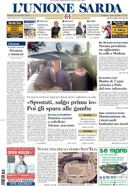 Uncategorized RASSEGNA STAMPA 27-01-2018 RASSEGNA STAMPA 27-01-2018 Da Redazione Cagliaripad - 27 Gennaio 2018 ARTICOLI CORRELATIALTRI ARTICOLI DA QUESTO AUTORE Uncategorized “Passerella rovina dune a La Caletta”, esposto cittadini Uncategorized Sardegna: da oggi sei Province e due Città metropolitane Uncategorized Comunali: slittano in autunno anche in Sardegna Uncategorized Muravera, nasce in villaggio turistico area dedicata a ospiti con disabilità Uncategorized Laconi: litigio tra automobilisti, un denunciato per danneggiamento e minacce Uncategorized Cagliari, occhio alle multe: ecco gli autovelox del mese di aprile 2021 - Pubblicità - Ultime notizie Gimbe: “Sardegna agli ultimi posti in Italia per ciclo vaccinale completato” 31 Marzo 2021 Covid in Sardegna, Gimbe: “In una settimana casi in aumento del 56,8%” 31 Marzo 2021 Festino ‘clandestino’ a Cagliari: 12 sanzioni una denuncia 31 Marzo 2021