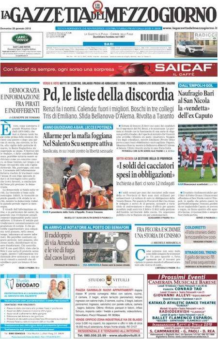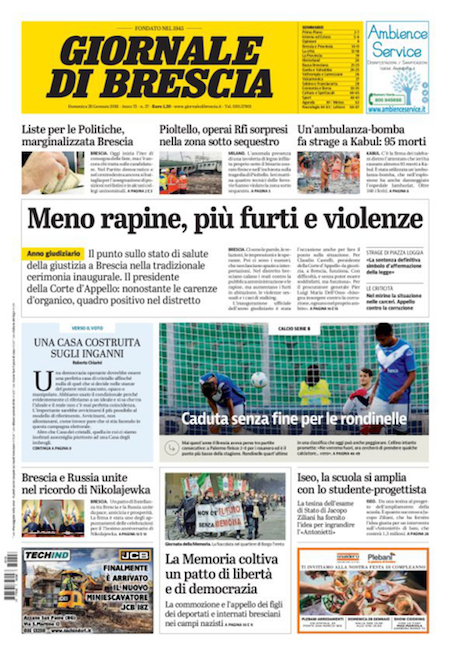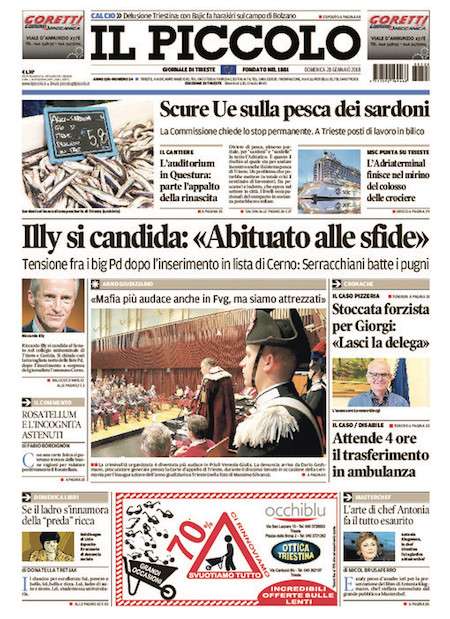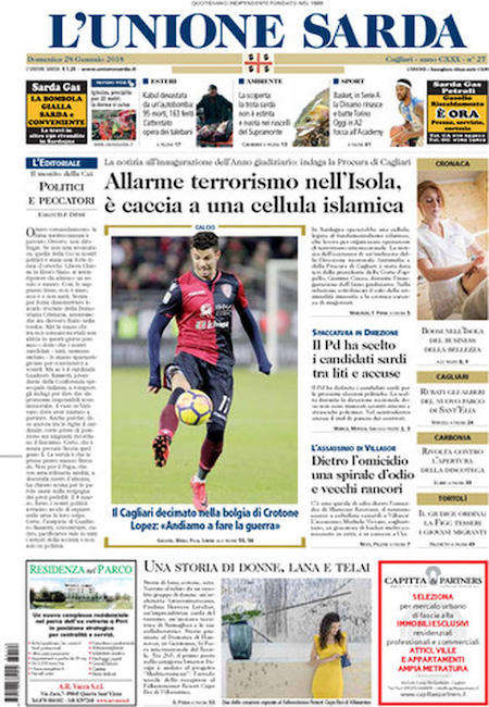 Uncategorized Rassegna stampa 28.01.2018 Rassegna stampa 28.01.2018 Da Redazione Cagliaripad (Archivio) - 28 Gennaio 2018 ARTICOLI CORRELATIALTRI ARTICOLI DA QUESTO AUTORE Uncategorized “Passerella rovina dune a La Caletta”, esposto cittadini Uncategorized Sardegna: da oggi sei Province e due Città metropolitane Uncategorized Comunali: slittano in autunno anche in Sardegna Uncategorized Muravera, nasce in villaggio turistico area dedicata a ospiti con disabilità Uncategorized Laconi: litigio tra automobilisti, un denunciato per danneggiamento e minacce Uncategorized Cagliari, occhio alle multe: ecco gli autovelox del mese di aprile 2021 - Pubblicità - Ultime notizie Gimbe: “Sardegna agli ultimi posti in Italia per ciclo vaccinale completato” 31 Marzo 2021 Covid in Sardegna, Gimbe: “In una settimana casi in aumento del 56,8%” 31 Marzo 2021 Festino ‘clandestino’ a Cagliari: 12 sanzioni una denuncia 31 Marzo 2021