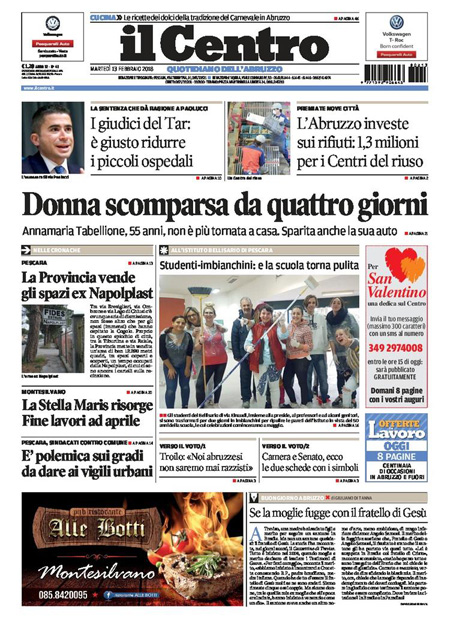 Uncategorized Rassegna stampa 13-02-2018 Rassegna stampa 13-02-2018 Da Redazione Cagliaripad (Archivio) - 13 Febbraio 2018 ARTICOLI CORRELATIALTRI ARTICOLI DA QUESTO AUTORE Uncategorized “Passerella rovina dune a La Caletta”, esposto cittadini Uncategorized Sardegna: da oggi sei Province e due Città metropolitane Uncategorized Comunali: slittano in autunno anche in Sardegna Uncategorized Muravera, nasce in villaggio turistico area dedicata a ospiti con disabilità Uncategorized Laconi: litigio tra automobilisti, un denunciato per danneggiamento e minacce Uncategorized Cagliari, occhio alle multe: ecco gli autovelox del mese di aprile 2021 - Pubblicità - Ultime notizie Gimbe: “Sardegna agli ultimi posti in Italia per ciclo vaccinale completato” 31 Marzo 2021 Covid in Sardegna, Gimbe: “In una settimana casi in aumento del 56,8%” 31 Marzo 2021 Festino ‘clandestino’ a Cagliari: 12 sanzioni una denuncia 31 Marzo 2021