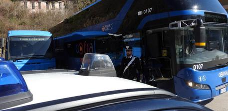 Carabinieri impegnati nell'ispezione di alcuni mezzi della Cotral, dopo il rinvenimento di aghi sulle sedute di mezzi impegnati sulla tratta Roma Ponte Mammolo-Subiaco, per i quali è stato denunciato un operatore sanitario di 58 anni, accusato di lesioni personali aggravate. Roma, 14 febbraio 2018. ANSA/ US CARABINIERI +++ NO SALES - EDITORIAL USE ONLY +++