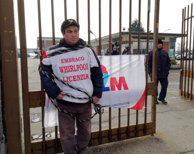 Un lavoratore dell’Embraco, Daniele Simoni, da 25 anni operaio presso Riva di Chieri, si è incatenato ai cancelli della fabbrica. “Non voglio mollare, è la mia fabbrica che mi ha dato da mangiare per 25 anni, finché c’è uno spiraglio non mollerò”, spiega l’operaio.