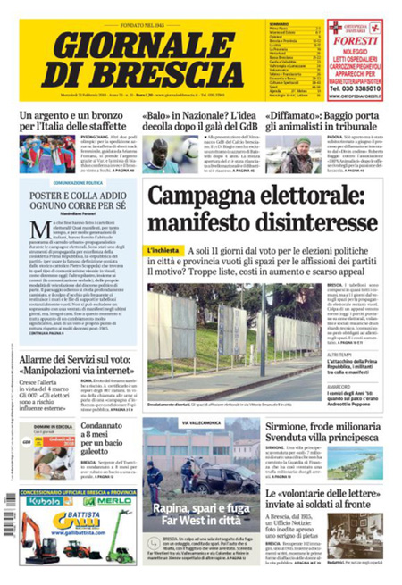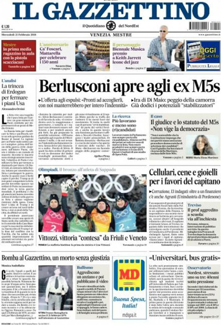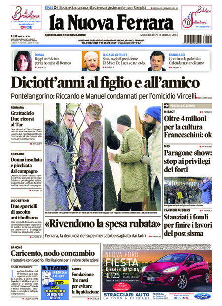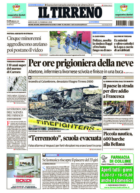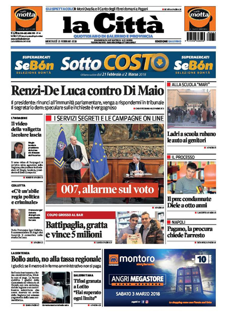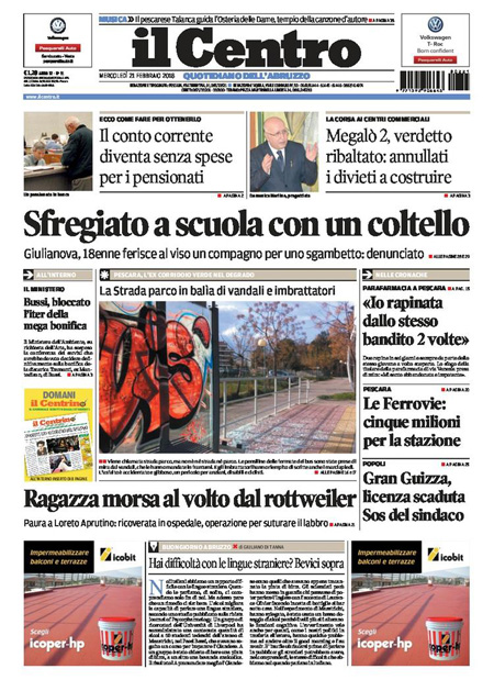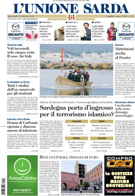 Uncategorized Rassegna stampa 21-02-2018 Rassegna stampa 21-02-2018 Da Redazione Cagliaripad - 21 Febbraio 2018 ARTICOLI CORRELATIALTRI ARTICOLI DA QUESTO AUTORE Uncategorized “Passerella rovina dune a La Caletta”, esposto cittadini Uncategorized Sardegna: da oggi sei Province e due Città metropolitane Uncategorized Comunali: slittano in autunno anche in Sardegna Uncategorized Muravera, nasce in villaggio turistico area dedicata a ospiti con disabilità Uncategorized Laconi: litigio tra automobilisti, un denunciato per danneggiamento e minacce Uncategorized Cagliari, occhio alle multe: ecco gli autovelox del mese di aprile 2021 - Pubblicità - Ultime notizie Gimbe: “Sardegna agli ultimi posti in Italia per ciclo vaccinale completato” 31 Marzo 2021 Covid in Sardegna, Gimbe: “In una settimana casi in aumento del 56,8%” 31 Marzo 2021 Festino ‘clandestino’ a Cagliari: 12 sanzioni una denuncia 31 Marzo 2021