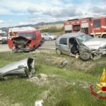 Il violento scontro è avvenuto all’altezza del ristorante I Ginepri. Sul posto il personale del 118 e i vigili del fuoco, che hanno estratto dalle lamiere alcuni feriti, fortunatamente di lieve entità. Ecco le foto fornite dai caschi rossi: