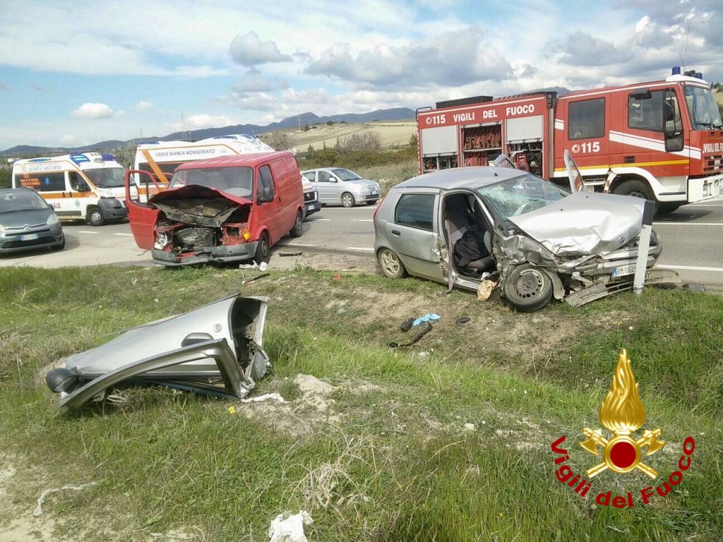 Il violento scontro è avvenuto all’altezza del ristorante I Ginepri. Sul posto il personale del 118 e i vigili del fuoco, che hanno estratto dalle lamiere alcuni feriti, fortunatamente di lieve entità. Ecco le foto fornite dai caschi rossi: