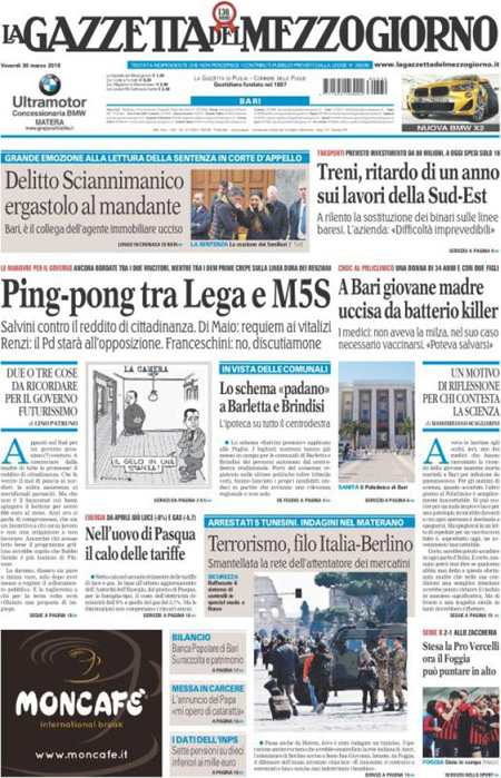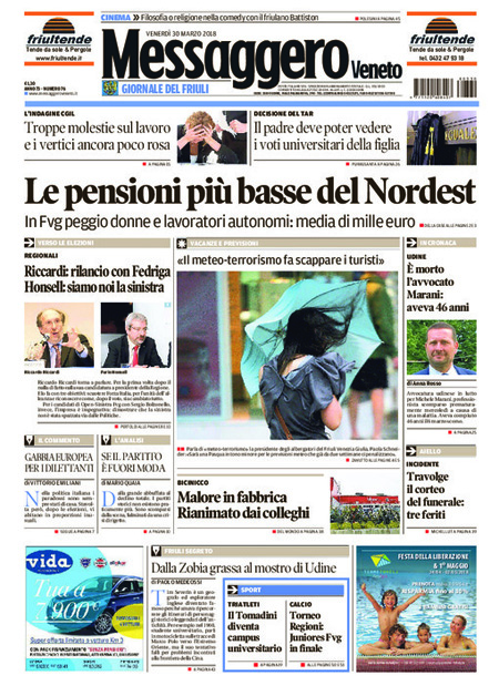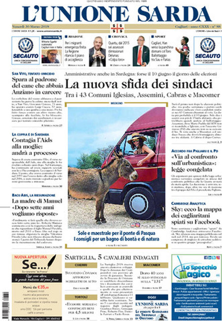Uncategorized Rassegna Stampa 30.03.2018 Rassegna Stampa 30.03.2018 Da Ansa News - 30 Marzo 2018 ARTICOLI CORRELATIALTRI ARTICOLI DA QUESTO AUTORE Uncategorized “Passerella rovina dune a La Caletta”, esposto cittadini Uncategorized Sardegna: da oggi sei Province e due Città metropolitane Uncategorized Comunali: slittano in autunno anche in Sardegna Uncategorized Muravera, nasce in villaggio turistico area dedicata a ospiti con disabilità Uncategorized Laconi: litigio tra automobilisti, un denunciato per danneggiamento e minacce Uncategorized Cagliari, occhio alle multe: ecco gli autovelox del mese di aprile 2021 - Pubblicità - Ultime notizie Gimbe: “Sardegna agli ultimi posti in Italia per ciclo vaccinale completato” 31 Marzo 2021 Covid in Sardegna, Gimbe: “In una settimana casi in aumento del 56,8%” 31 Marzo 2021 Festino ‘clandestino’ a Cagliari: 12 sanzioni una denuncia 31 Marzo 2021