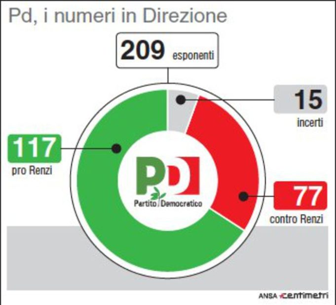 IL DOCUMENTO DEI RENZIANI – Niente “conte interne” alla Direzione: lo “stallo” politico è “frutto dell’irresponsabilità” di M5s e centrodestra; sì al confronto ma niente fiducia “a un governo guidato da Salvini o Di Maio”. Sono questi i tre punti di un breve documento predisposto dai renziani sui quali è partita una raccolta di firme tra i parlamentari e i membri della Direzione del Pd. Al momento sarebbero state raccolte le firme di 77 deputati su 105 e 39 senatori su 52. Tra i firmatari anche i capigruppo Delrio e Marcucci. “Siamo parlamentari eletti con il PD e membri della Direzione – esordisce il Documento – Proveniamo da storie e percorsi diversi. Non sappiamo se il prossimo congresso ci vedrà sulle stesse posizioni o se, del tutto legittimamente, sosterremo candidati diversi. Pensiamo tuttavia che tre punti chiave ci uniscano in modo forte” “1. Crediamo dannoso – si legge ancora – fare conte interne nella prossima Direzione. È più utile riflettere insieme sulla visione che ci attende per le prossime sfide e sulle idee guida del futuro del centrosinistra in Italia. 2. Crediamo che lo stallo creato dal voto del 4 marzo sia frutto dell’irresponsabilità del Centrodestra e del Movimento Cinque Stelle che con la loro campagna elettorale permanente hanno messo e stanno continuando a mettere in difficoltà il nostro Paese. 3. Crediamo che il PD debba essere pronto a confrontarsi con tutti, ma partendo dal rispetto dell’esito del voto: per questo non voteremo la fiducia a un governo guidato da Salvini o Di Maio. Significherebbe infatti venire meno al mandato degli elettori democratici. È utile invece impegnarci a un lavoro comune, insieme a tutte le altre forze politiche, per riscrivere insieme le regole del nostro sistema politico-istituzionale”, conclude il documento.