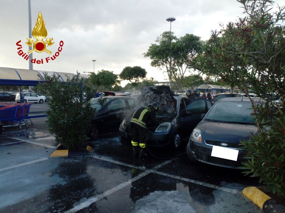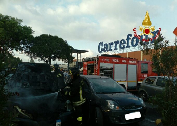 Un’auto in fiamme è stata spenta dai vigili del fuoco intervenuti nei parcheggi del centro commerciale Carrefour, a Quartu Sant’Elena.