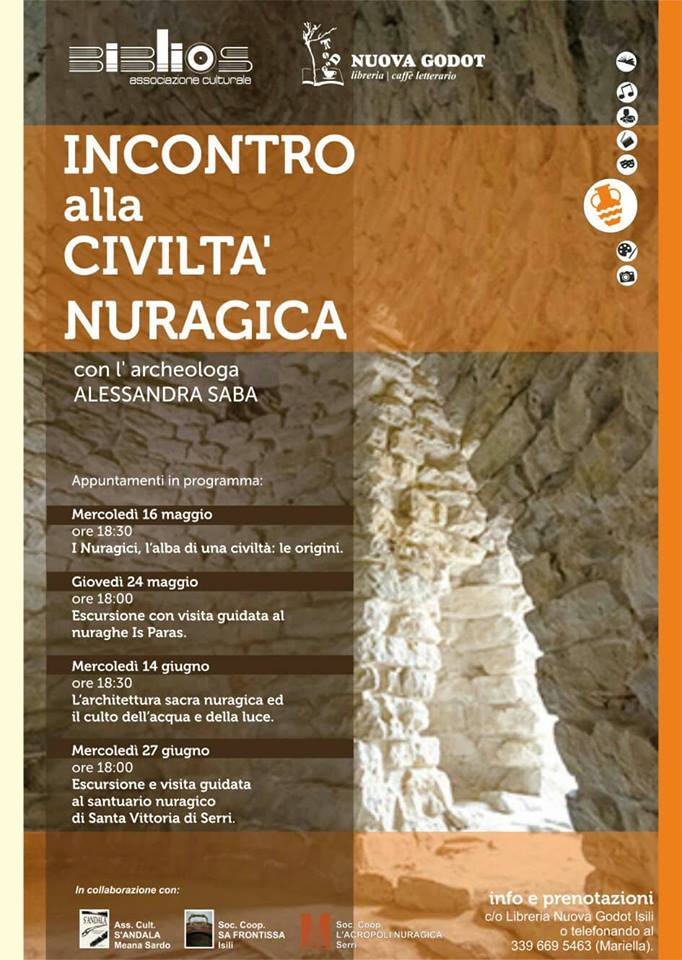 L’Associazione culturale Biblios e la Libreria Nuova Godot ospiteranno in quattro appuntamenti che si svolgeranno tra maggio e giugno, una rassegna di incontri dedicati alla Civiltà Nuragica.