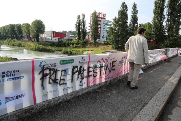 Photogallery Ciclismo, al Giro d’Italia migliaia di bandiere palestinesi hanno sventolato in tutte...