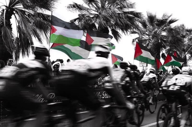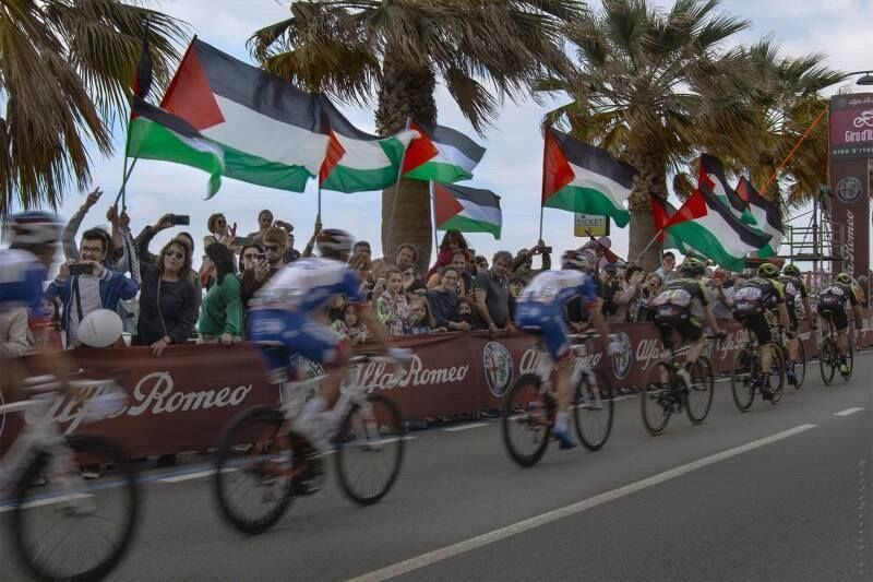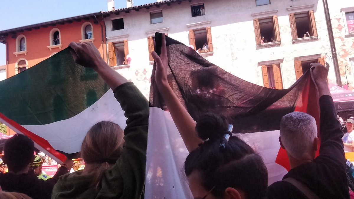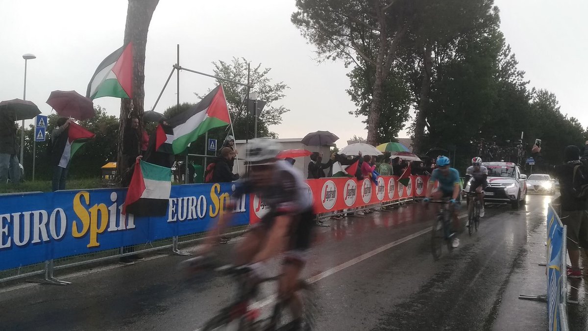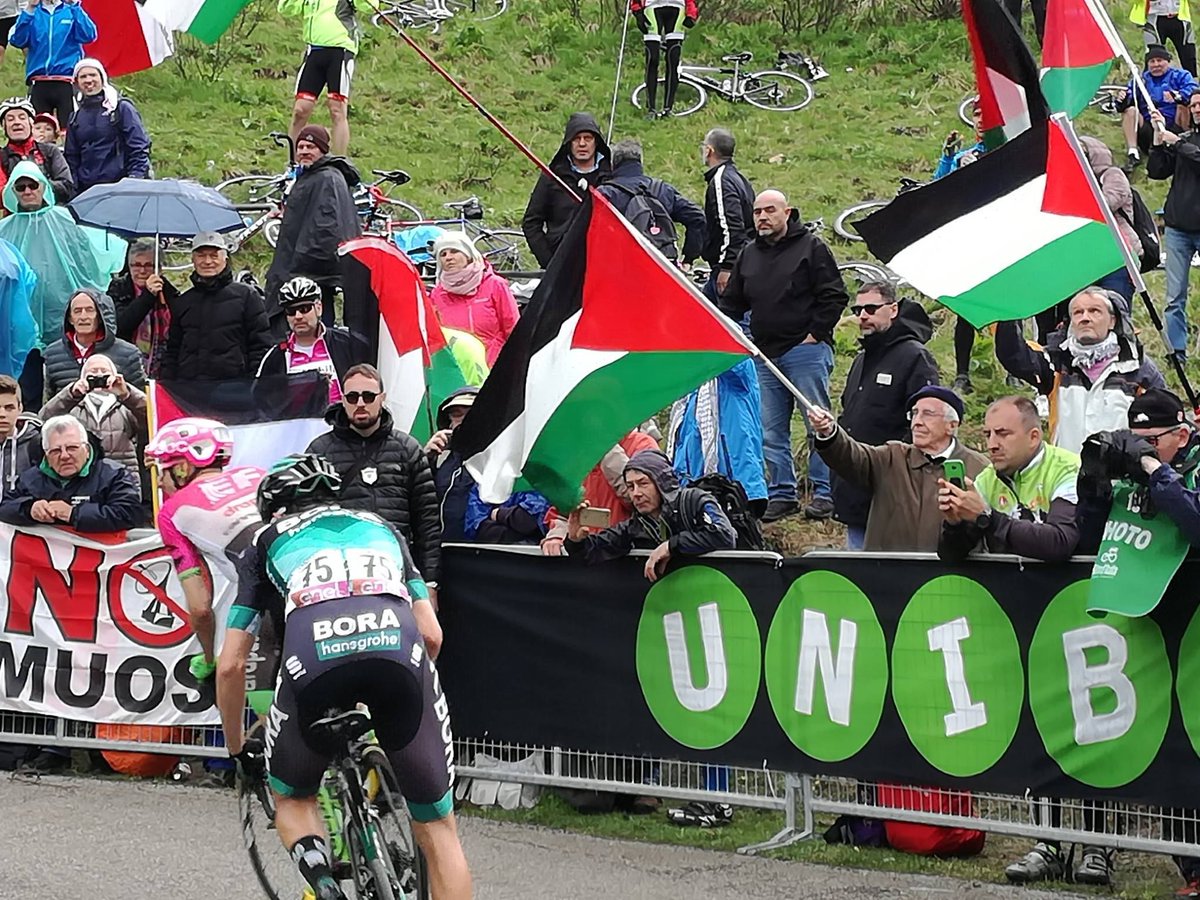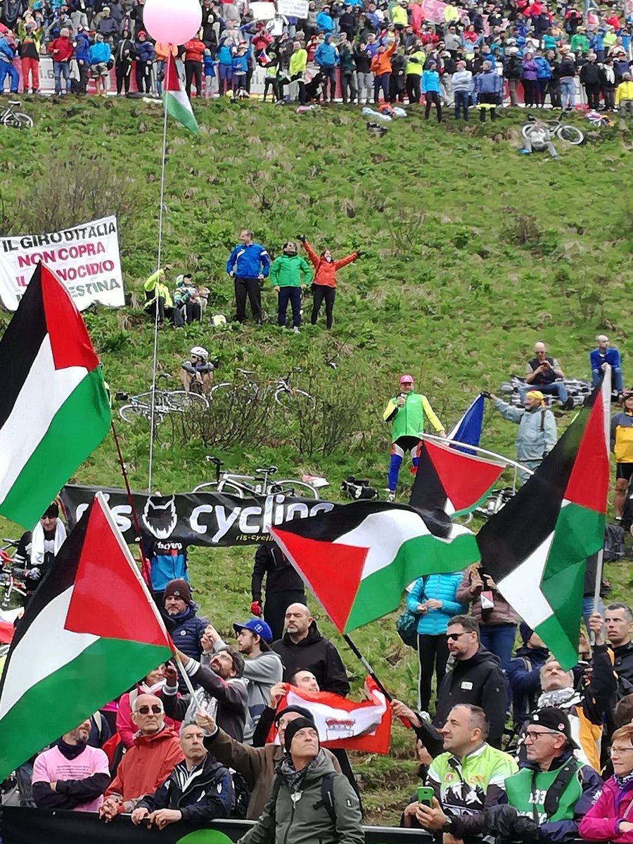 Ciclismo, al Giro d’Italia migliaia di bandiere palestinesi hanno sventolato in tutte le tappe della gara