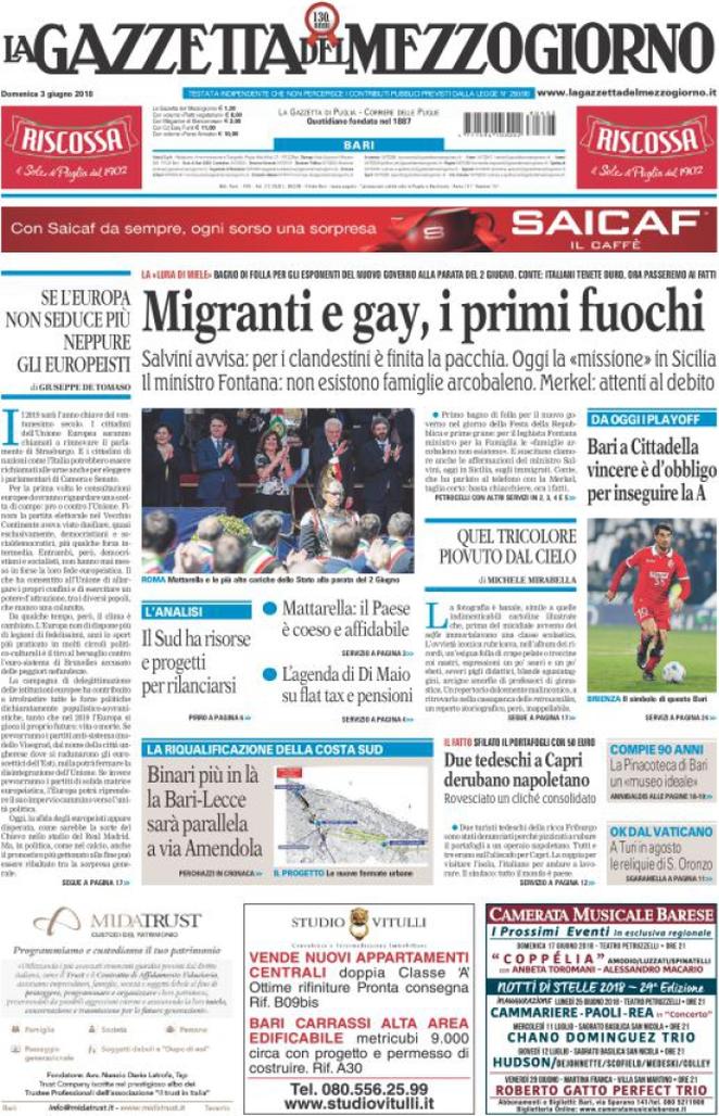 Uncategorized Rassegna stampa 03.06.2018 Rassegna stampa 03.06.2018 Da Redazione Cagliaripad (Archivio) - 3 Giugno 2018 ARTICOLI CORRELATIALTRI ARTICOLI DA QUESTO AUTORE Uncategorized “Passerella rovina dune a La Caletta”, esposto cittadini Uncategorized Sardegna: da oggi sei Province e due Città metropolitane Uncategorized Comunali: slittano in autunno anche in Sardegna Uncategorized Muravera, nasce in villaggio turistico area dedicata a ospiti con disabilità Uncategorized Laconi: litigio tra automobilisti, un denunciato per danneggiamento e minacce Uncategorized Cagliari, occhio alle multe: ecco gli autovelox del mese di aprile 2021 - Pubblicità - Ultime notizie Gimbe: “Sardegna agli ultimi posti in Italia per ciclo vaccinale completato” 31 Marzo 2021 Covid in Sardegna, Gimbe: “In una settimana casi in aumento del 56,8%” 31 Marzo 2021 Festino ‘clandestino’ a Cagliari: 12 sanzioni una denuncia 31 Marzo 2021