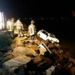L’auto, una Peugeot 308, dopo essersi ribaltata più volte, è arrivata fino a ridosso delle acque del litorale.