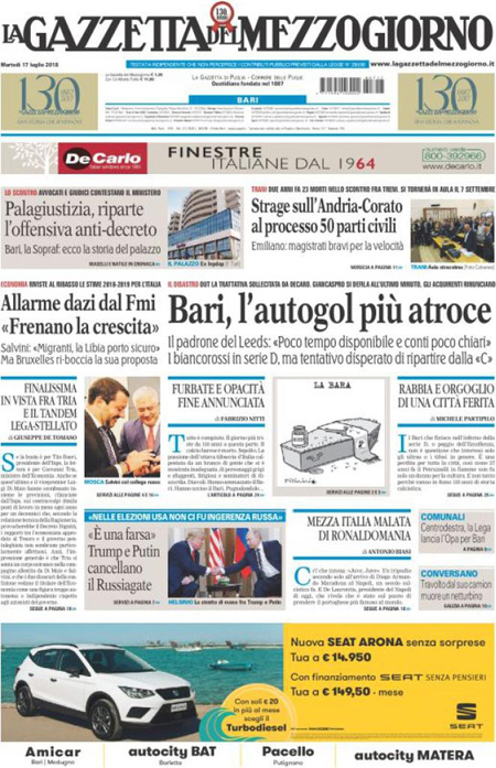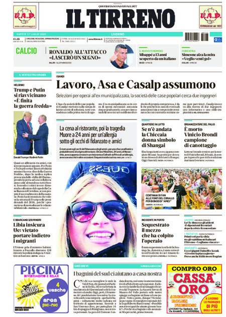 Uncategorized Rassegna stampa 17.07.2018 Rassegna stampa 17.07.2018 Da Redazione Cagliaripad - 17 Luglio 2018 ARTICOLI CORRELATIALTRI ARTICOLI DA QUESTO AUTORE Uncategorized “Passerella rovina dune a La Caletta”, esposto cittadini Uncategorized Sardegna: da oggi sei Province e due Città metropolitane Uncategorized Comunali: slittano in autunno anche in Sardegna Uncategorized Muravera, nasce in villaggio turistico area dedicata a ospiti con disabilità Uncategorized Laconi: litigio tra automobilisti, un denunciato per danneggiamento e minacce Uncategorized Cagliari, occhio alle multe: ecco gli autovelox del mese di aprile 2021 - Pubblicità - Ultime notizie Gimbe: “Sardegna agli ultimi posti in Italia per ciclo vaccinale completato” 31 Marzo 2021 Covid in Sardegna, Gimbe: “In una settimana casi in aumento del 56,8%” 31 Marzo 2021 Festino ‘clandestino’ a Cagliari: 12 sanzioni una denuncia 31 Marzo 2021