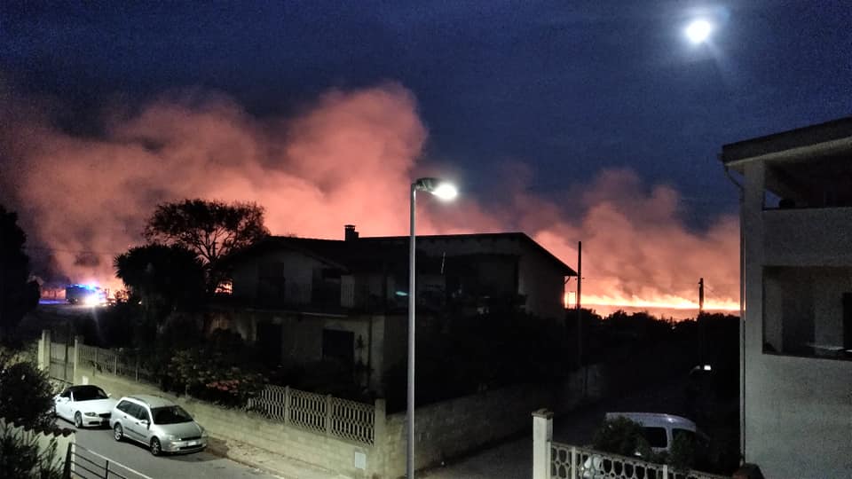Questa notte è divampato un incendio ad Assemini, nei campi a ridosso delle case di via Tuveri.