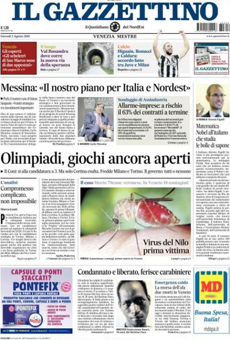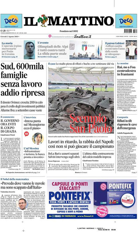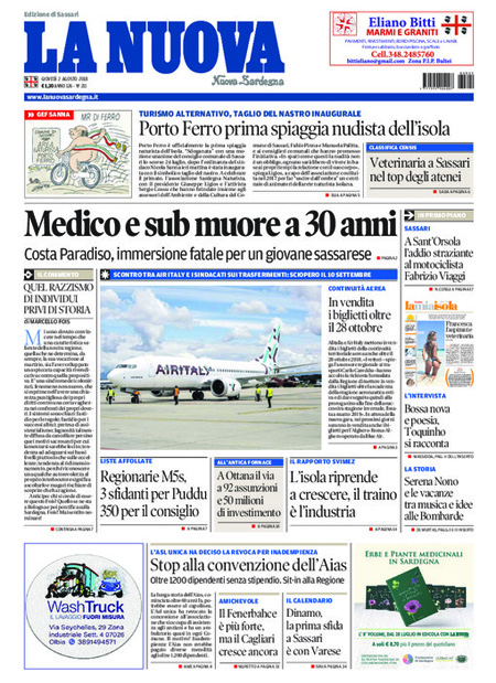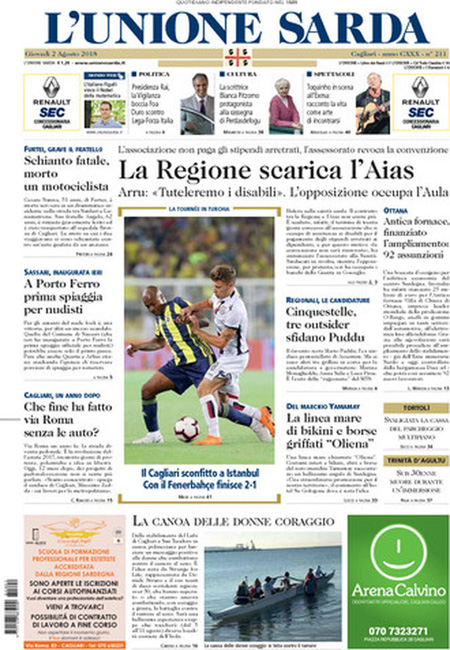 Uncategorized Rassegna stampa 02.08.2018 Rassegna stampa 02.08.2018 Da Redazione Cagliaripad - 2 Agosto 2018 ARTICOLI CORRELATIALTRI ARTICOLI DA QUESTO AUTORE Uncategorized “Passerella rovina dune a La Caletta”, esposto cittadini Uncategorized Sardegna: da oggi sei Province e due Città metropolitane Uncategorized Comunali: slittano in autunno anche in Sardegna Uncategorized Muravera, nasce in villaggio turistico area dedicata a ospiti con disabilità Uncategorized Laconi: litigio tra automobilisti, un denunciato per danneggiamento e minacce Uncategorized Cagliari, occhio alle multe: ecco gli autovelox del mese di aprile 2021 - Pubblicità - Ultime notizie Gimbe: “Sardegna agli ultimi posti in Italia per ciclo vaccinale completato” 31 Marzo 2021 Covid in Sardegna, Gimbe: “In una settimana casi in aumento del 56,8%” 31 Marzo 2021 Festino ‘clandestino’ a Cagliari: 12 sanzioni una denuncia 31 Marzo 2021