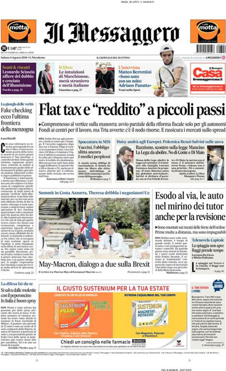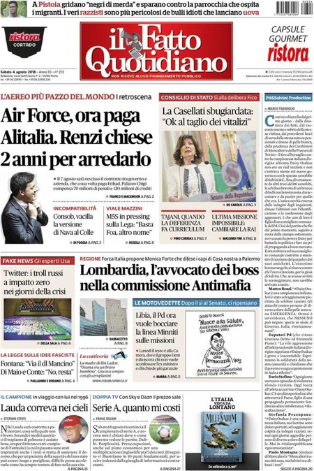 RASSEGNA STAMPA 04-08-2018