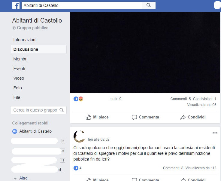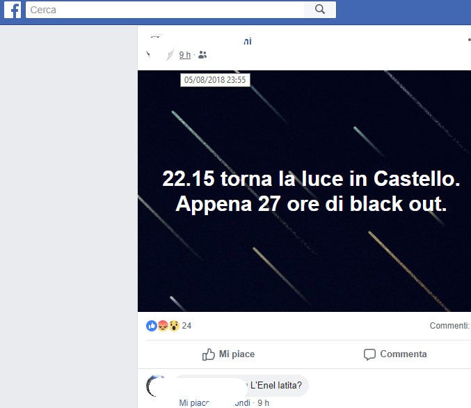 “Ci sarà qualcuno che oggi,domani,dopodomani userà la cortesia ai residenti di Castello di spiegare i motivi per cui il quartiere è privo dell’illuminazione pubblica fin da ieri?”, chiede un residente alle 2,52 del 5 agosto. Naturalmente nessuna risposta.