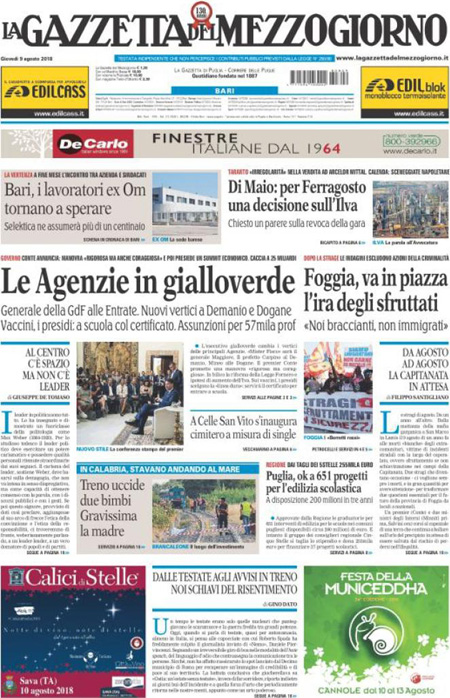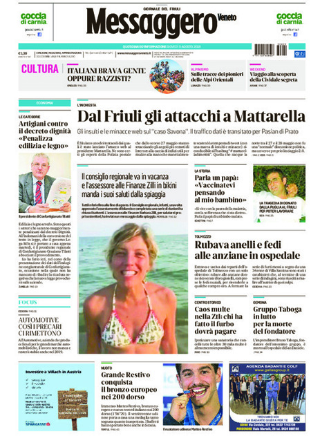 Uncategorized RASSEGNA STAMPA 09-08-2018 RASSEGNA STAMPA 09-08-2018 Da Redazione Cagliaripad - 9 Agosto 2018 ARTICOLI CORRELATIALTRI ARTICOLI DA QUESTO AUTORE Uncategorized “Passerella rovina dune a La Caletta”, esposto cittadini Uncategorized Sardegna: da oggi sei Province e due Città metropolitane Uncategorized Comunali: slittano in autunno anche in Sardegna Uncategorized Muravera, nasce in villaggio turistico area dedicata a ospiti con disabilità Uncategorized Laconi: litigio tra automobilisti, un denunciato per danneggiamento e minacce Uncategorized Cagliari, occhio alle multe: ecco gli autovelox del mese di aprile 2021 - Pubblicità - Ultime notizie Gimbe: “Sardegna agli ultimi posti in Italia per ciclo vaccinale completato” 31 Marzo 2021 Covid in Sardegna, Gimbe: “In una settimana casi in aumento del 56,8%” 31 Marzo 2021 Festino ‘clandestino’ a Cagliari: 12 sanzioni una denuncia 31 Marzo 2021