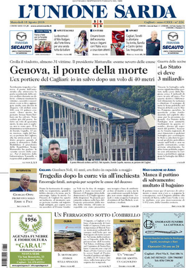 Uncategorized RASSEGNA STAMPA 15-08-2018 RASSEGNA STAMPA 15-08-2018 Da Redazione Cagliaripad - 15 Agosto 2018 ARTICOLI CORRELATIALTRI ARTICOLI DA QUESTO AUTORE Uncategorized “Passerella rovina dune a La Caletta”, esposto cittadini Uncategorized Sardegna: da oggi sei Province e due Città metropolitane Uncategorized Comunali: slittano in autunno anche in Sardegna Uncategorized Muravera, nasce in villaggio turistico area dedicata a ospiti con disabilità Uncategorized Laconi: litigio tra automobilisti, un denunciato per danneggiamento e minacce Uncategorized Cagliari, occhio alle multe: ecco gli autovelox del mese di aprile 2021 - Pubblicità - Ultime notizie Gimbe: “Sardegna agli ultimi posti in Italia per ciclo vaccinale completato” 31 Marzo 2021 Covid in Sardegna, Gimbe: “In una settimana casi in aumento del 56,8%” 31 Marzo 2021 Festino ‘clandestino’ a Cagliari: 12 sanzioni una denuncia 31 Marzo 2021
