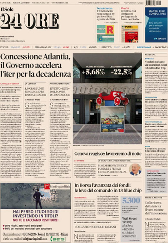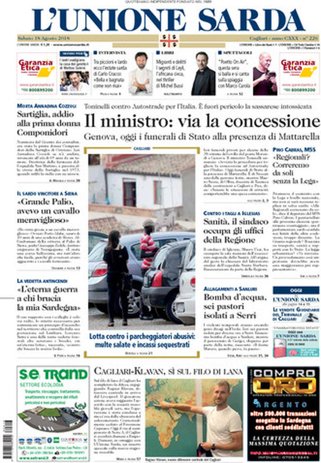 Uncategorized Rassegna stampa 18.08.2018 Rassegna stampa 18.08.2018 Da Redazione Cagliaripad - 18 Agosto 2018 ARTICOLI CORRELATIALTRI ARTICOLI DA QUESTO AUTORE Uncategorized “Passerella rovina dune a La Caletta”, esposto cittadini Uncategorized Sardegna: da oggi sei Province e due Città metropolitane Uncategorized Comunali: slittano in autunno anche in Sardegna Uncategorized Muravera, nasce in villaggio turistico area dedicata a ospiti con disabilità Uncategorized Laconi: litigio tra automobilisti, un denunciato per danneggiamento e minacce Uncategorized Cagliari, occhio alle multe: ecco gli autovelox del mese di aprile 2021 - Pubblicità - Ultime notizie Gimbe: “Sardegna agli ultimi posti in Italia per ciclo vaccinale completato” 31 Marzo 2021 Covid in Sardegna, Gimbe: “In una settimana casi in aumento del 56,8%” 31 Marzo 2021 Festino ‘clandestino’ a Cagliari: 12 sanzioni una denuncia 31 Marzo 2021
