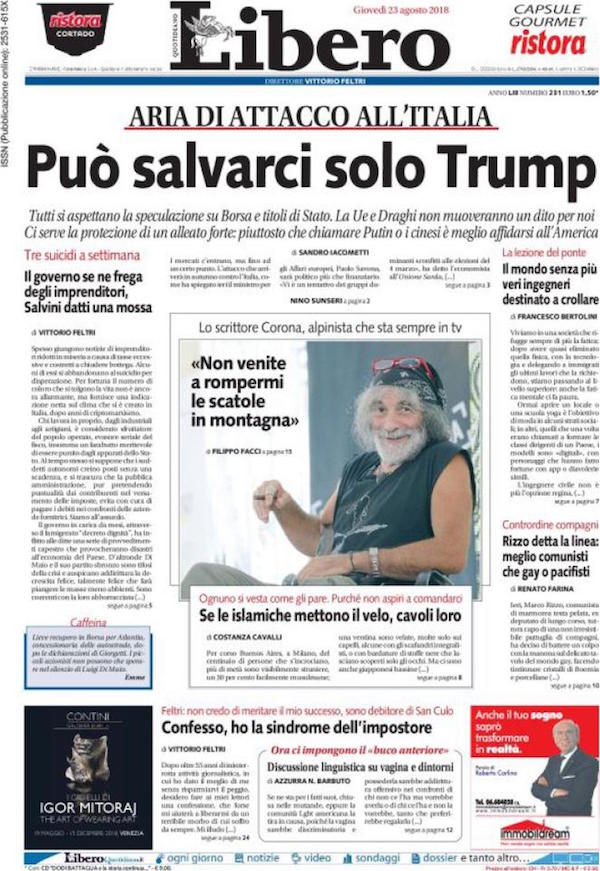 Uncategorized Rassegna stampa 23.08.2018 Rassegna stampa 23.08.2018 Da Redazione Cagliaripad - 23 Agosto 2018 ARTICOLI CORRELATIALTRI ARTICOLI DA QUESTO AUTORE Uncategorized “Passerella rovina dune a La Caletta”, esposto cittadini Uncategorized Sardegna: da oggi sei Province e due Città metropolitane Uncategorized Comunali: slittano in autunno anche in Sardegna Uncategorized Muravera, nasce in villaggio turistico area dedicata a ospiti con disabilità Uncategorized Laconi: litigio tra automobilisti, un denunciato per danneggiamento e minacce Uncategorized Cagliari, occhio alle multe: ecco gli autovelox del mese di aprile 2021 - Pubblicità - Ultime notizie Gimbe: “Sardegna agli ultimi posti in Italia per ciclo vaccinale completato” 31 Marzo 2021 Covid in Sardegna, Gimbe: “In una settimana casi in aumento del 56,8%” 31 Marzo 2021 Festino ‘clandestino’ a Cagliari: 12 sanzioni una denuncia 31 Marzo 2021