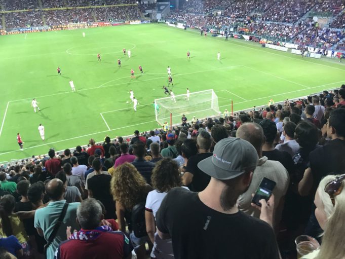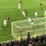Il Cagliari gioca e impressiona positivamente, entusiasma i 16mila del Sardegna Arena, ma al 27’ la difesa si distrae e rischia su un cross di Calabria che pesca Bonaventura che sbaglia il pareggio da due metri. Comunque il Cagliari c’è e gioca ordinato, costruisce e attacca. E’ sempre Barella il fulcro di tutto: combatte, recupera e costruisce. E si permette giocate d’alta scuola. Il Cagliari gira bene e tiene schiacciato il Milan mostrando un gioco spumeggiante e ordinato.