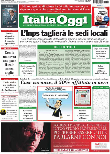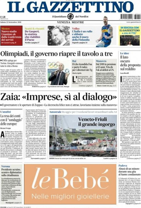 Uncategorized RASSEGNA STAMPA 22-09-2018 RASSEGNA STAMPA 22-09-2018 Da Redazione Cagliaripad - 22 Settembre 2018 ARTICOLI CORRELATIALTRI ARTICOLI DA QUESTO AUTORE Uncategorized “Passerella rovina dune a La Caletta”, esposto cittadini Uncategorized Sardegna: da oggi sei Province e due Città metropolitane Uncategorized Comunali: slittano in autunno anche in Sardegna Uncategorized Muravera, nasce in villaggio turistico area dedicata a ospiti con disabilità Uncategorized Laconi: litigio tra automobilisti, un denunciato per danneggiamento e minacce Uncategorized Cagliari, occhio alle multe: ecco gli autovelox del mese di aprile 2021 - Pubblicità - Ultime notizie Gimbe: “Sardegna agli ultimi posti in Italia per ciclo vaccinale completato” 31 Marzo 2021 Covid in Sardegna, Gimbe: “In una settimana casi in aumento del 56,8%” 31 Marzo 2021 Festino ‘clandestino’ a Cagliari: 12 sanzioni una denuncia 31 Marzo 2021