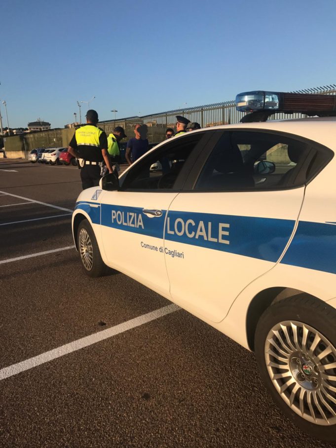 La polizia municipale questa sera era presente nei parcheggi dello stadio Sardegna Arena in occasione della partita Cagliari-Sampdoria in programma oggi alle 21