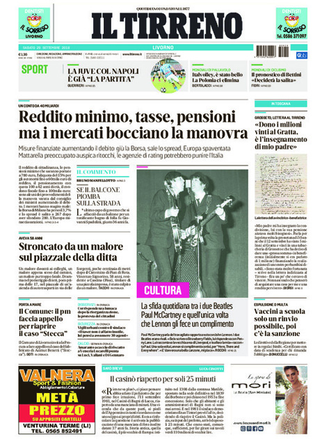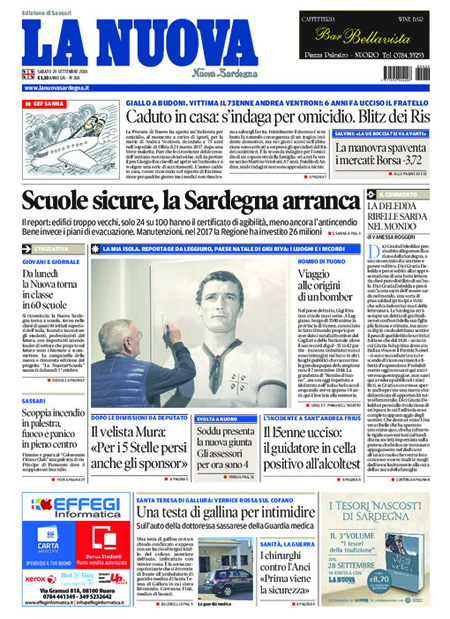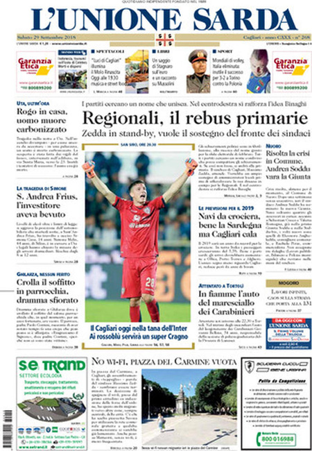 Uncategorized RASSEGNA STAMPA 29-09-2018 RASSEGNA STAMPA 29-09-2018 Da Redazione Cagliaripad - 29 Settembre 2018 ARTICOLI CORRELATIALTRI ARTICOLI DA QUESTO AUTORE Uncategorized “Passerella rovina dune a La Caletta”, esposto cittadini Uncategorized Sardegna: da oggi sei Province e due Città metropolitane Uncategorized Comunali: slittano in autunno anche in Sardegna Uncategorized Muravera, nasce in villaggio turistico area dedicata a ospiti con disabilità Uncategorized Laconi: litigio tra automobilisti, un denunciato per danneggiamento e minacce Uncategorized Cagliari, occhio alle multe: ecco gli autovelox del mese di aprile 2021 - Pubblicità - Ultime notizie Gimbe: “Sardegna agli ultimi posti in Italia per ciclo vaccinale completato” 31 Marzo 2021 Covid in Sardegna, Gimbe: “In una settimana casi in aumento del 56,8%” 31 Marzo 2021 Festino ‘clandestino’ a Cagliari: 12 sanzioni una denuncia 31 Marzo 2021