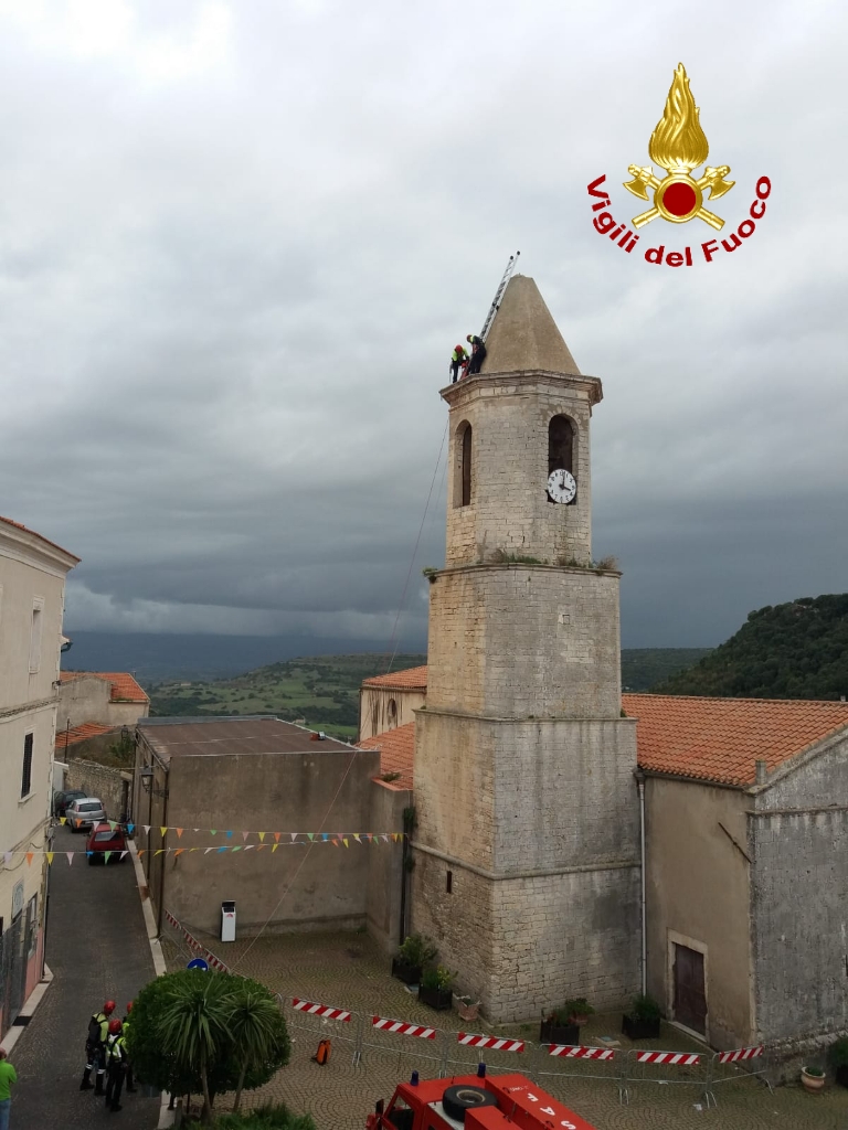 I Vigili del Fuoco di Sassari sono stati impegnati in una delicata opera di messa in sicurezza del campanile della chiesa di S. Andrea Apostolo nel Comune di Sedini.