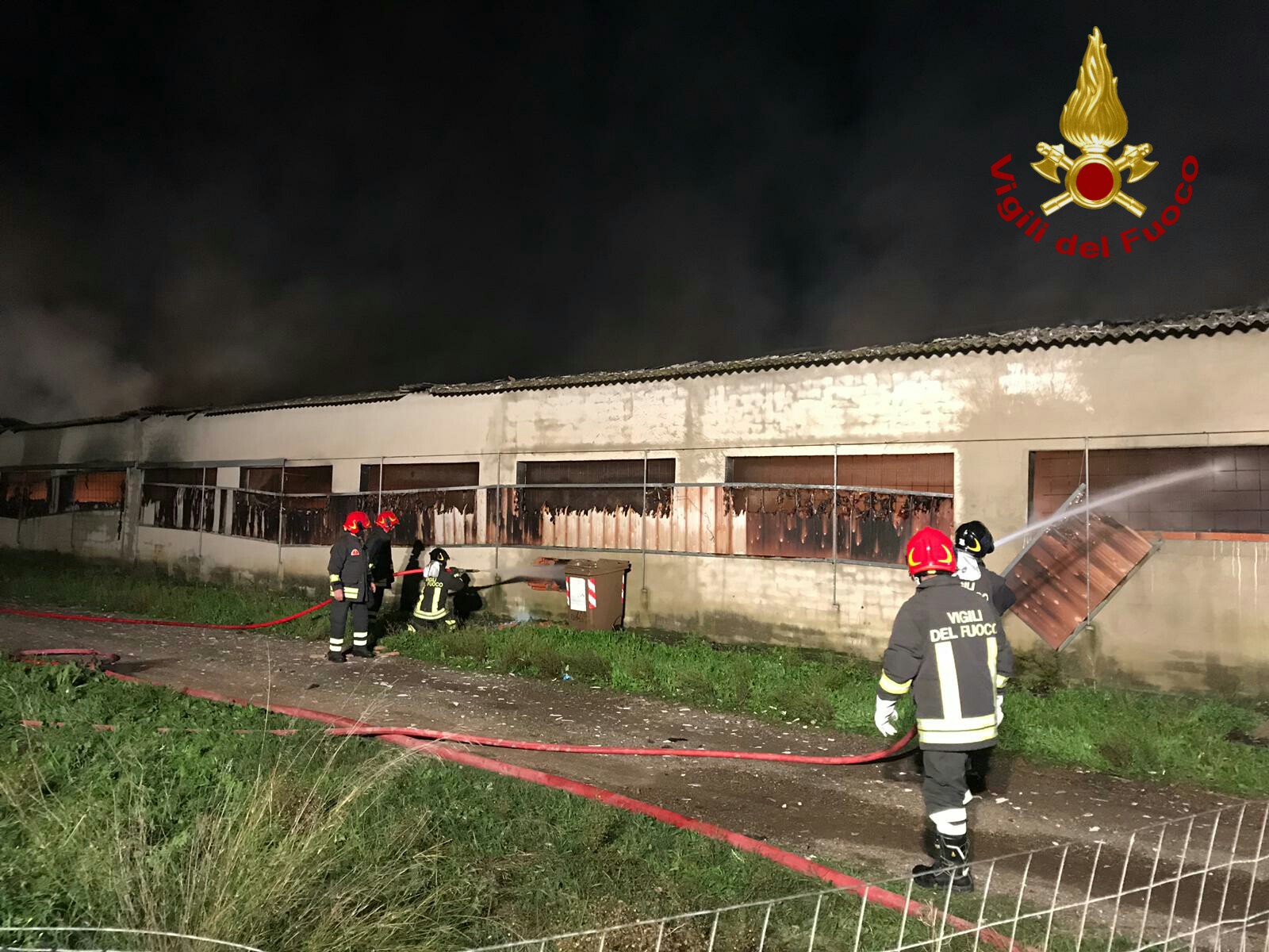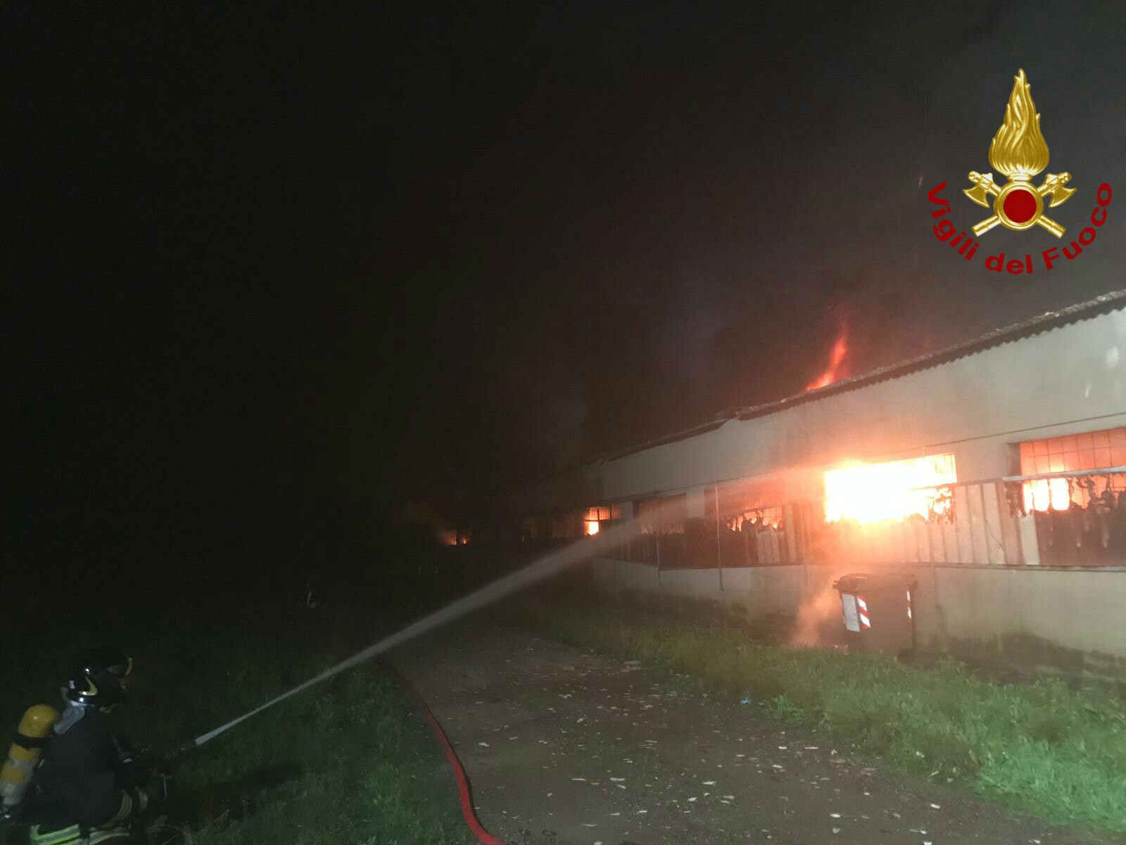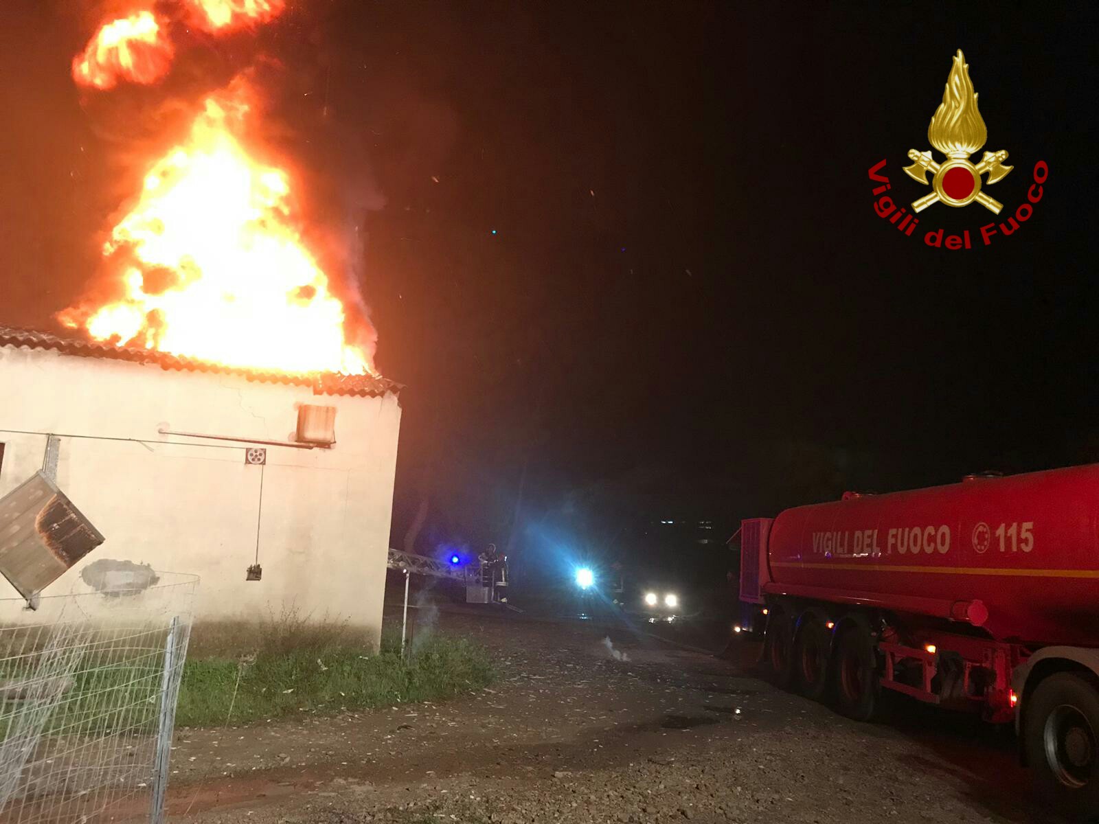 Tanta paura nella notte per un vasto incendio che ha devastato un deposito di attrezzature, sul posto sono intervenuti i vigili del fuoco che hanno, dopo diverse ore, domato le fiamme