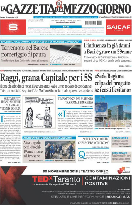Uncategorized RASSEGNA STAMPA 10-11-2018 RASSEGNA STAMPA 10-11-2018 Da Redazione Cagliaripad - 10 Novembre 2018 ARTICOLI CORRELATIALTRI ARTICOLI DA QUESTO AUTORE Uncategorized “Passerella rovina dune a La Caletta”, esposto cittadini Uncategorized Sardegna: da oggi sei Province e due Città metropolitane Uncategorized Comunali: slittano in autunno anche in Sardegna Uncategorized Muravera, nasce in villaggio turistico area dedicata a ospiti con disabilità Uncategorized Laconi: litigio tra automobilisti, un denunciato per danneggiamento e minacce Uncategorized Cagliari, occhio alle multe: ecco gli autovelox del mese di aprile 2021 - Pubblicità - Ultime notizie Gimbe: “Sardegna agli ultimi posti in Italia per ciclo vaccinale completato” 31 Marzo 2021 Covid in Sardegna, Gimbe: “In una settimana casi in aumento del 56,8%” 31 Marzo 2021 Festino ‘clandestino’ a Cagliari: 12 sanzioni una denuncia 31 Marzo 2021