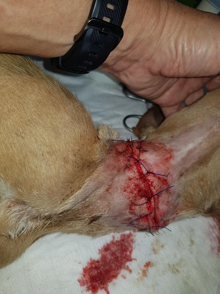 “Ce l’ha portata una giovane coppia che – si legge su un Post su Facebook – vedendola cosi conciata, l’hanno fatta salire in macchina e l’hanno condotta in Clinica”.