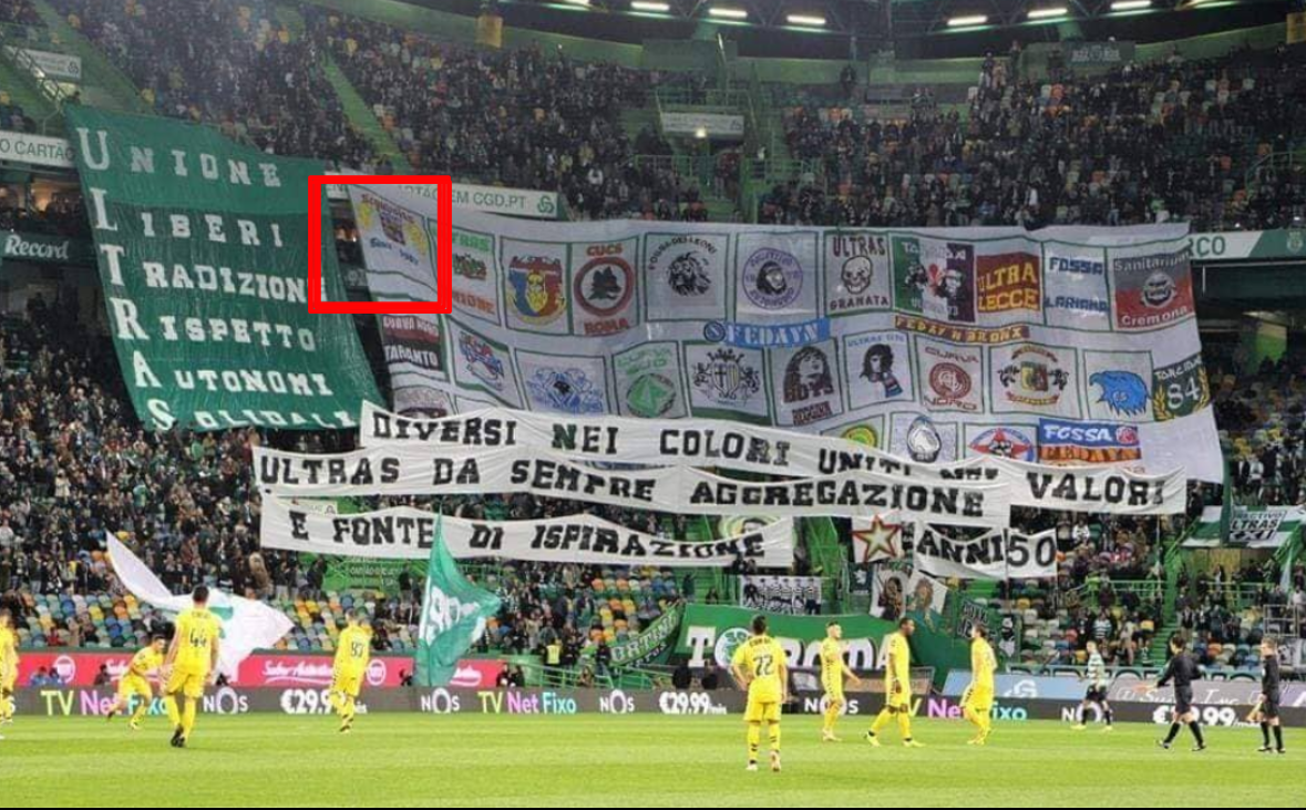Gli ultras dello Sporting Lisbona per i 50 anni della Curva Sud Milano e per omaggiare le tifoserie italiane, ha preparato una coreografia con l’elenco delle principali tifoserie d’Italia.